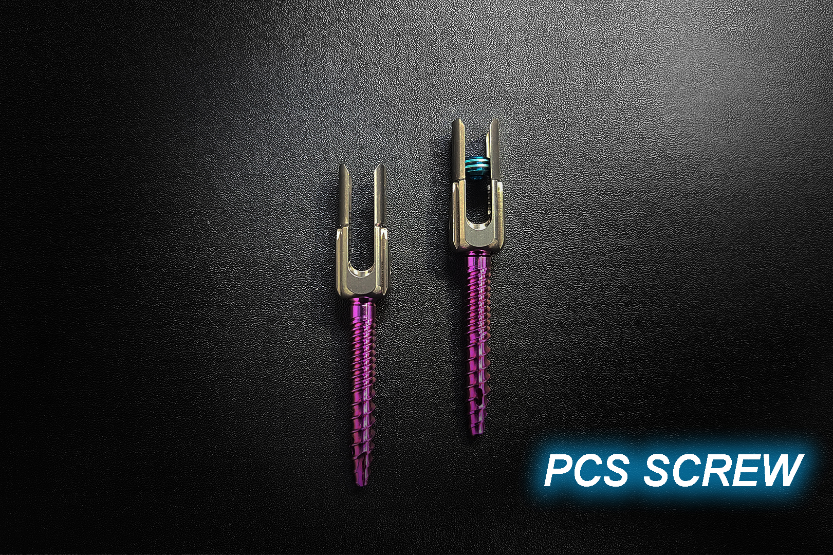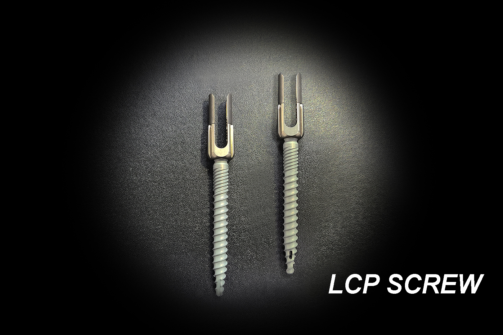 Four-threaded cortical screw designed for minimally invasive surgery. It has a hollow structure with side holes for bone cement injection. The screw shaft undergoes anodization to enhance bone adhesion and improve stability.